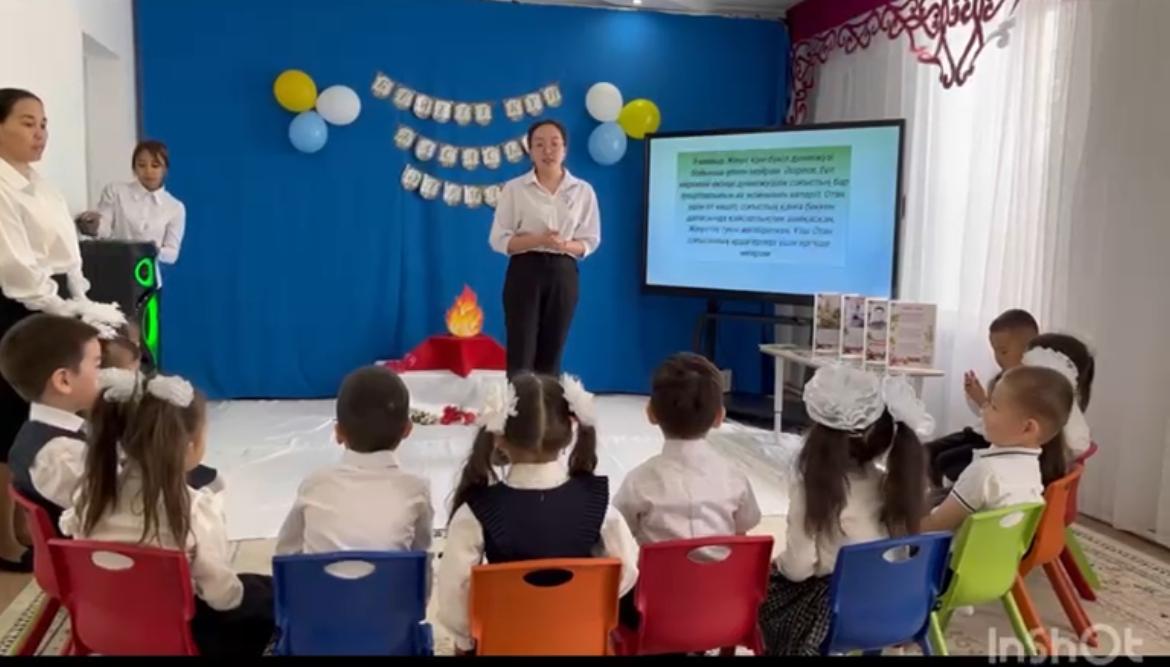 Мақсаты: Отанға деген сүйіспеншілігін арттыру. Балаларға патриоттық тәрбие беру. Балаларды Ұлы Отан соғысындағы ерлікпен таныстырып, ой өрісін дамыту. Үлкендерді сыйлай білуге, оларды қадірлеуге тәрбиелеу.